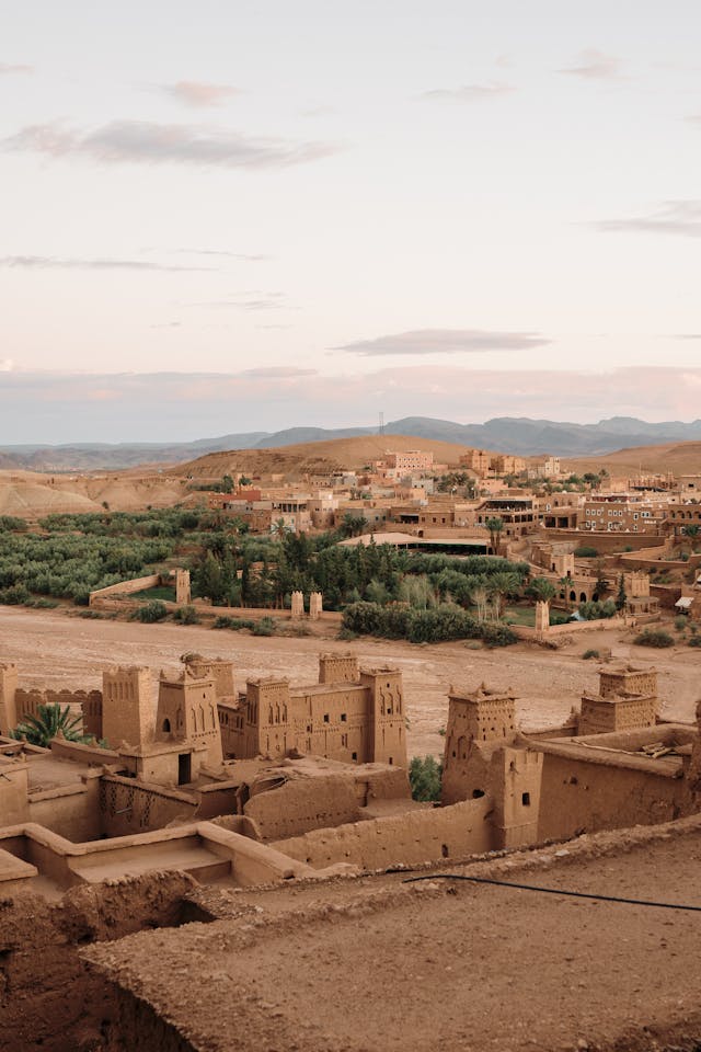 Your desert odyssey begins with a morning pick-up from your hotel in Marrakech. We embark on a scenic drive towards the majestic High Atlas Mountains, traversing the renowned Tizi-n-Tichka pass. This high mountain road, reaching an elevation of 2260 meters, offers continuous changes in landscape and color, passing through charming small villages and featuring picturesque waterfalls. We will pause at the pass to savor some mint tea and admire the breathtaking scenery before continuing to the ancient Kasbah of Ait Benhaddou. Arriving in time for lunch, you will have the opportunity to explore this famous UNESCO World Heritage site, celebrated as the backdrop for iconic films such as "Gladiator" and "Lawrence of Arabia." Following our visit, we journey through Ouarzazate, traverse the verdant Valley of Roses and the stunning Dades Valley. Our day concludes as we reach the dramatic Dades Gorge, where you'll enjoy dinner and an overnight stay in a traditional hotel.