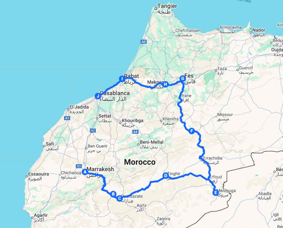 Embark on an immersive 9-day journey through the captivating landscapes and rich cultural heritage of Morocco. This meticulously crafted itinerary seamlessly blends the vibrant energy of imperial cities with the serene beauty of the Sahara Desert and the majestic grandeur of the Atlas Mountains. Commencing in the bustling souks of Marrakech, we venture across diverse terrains, encountering ancient kasbahs, nomadic communities, and breathtaking vistas, culminating in the modern metropolis of Casablanca. Prepare for an unforgettable exploration of Morocco's most iconic destinations.
