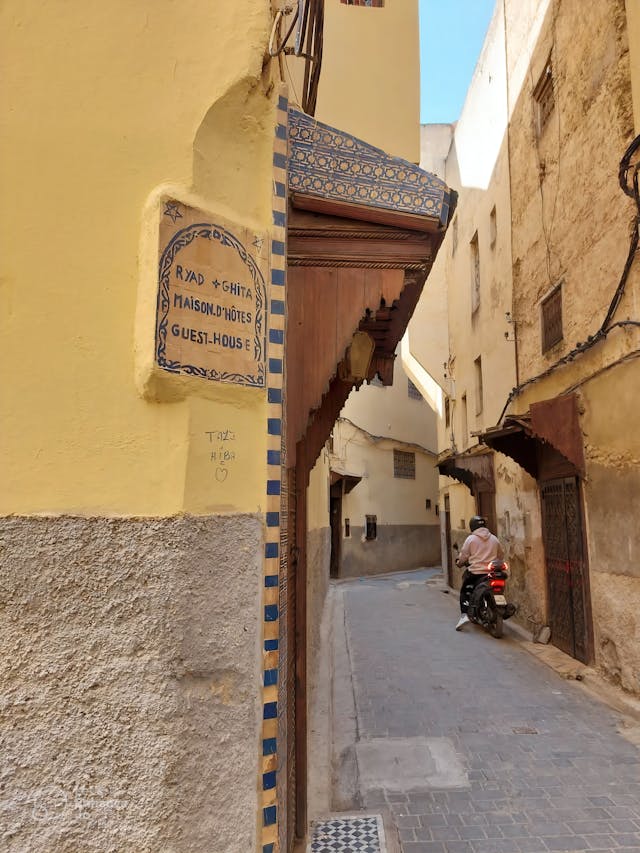 An optional early start allows you to witness a spectacular sunrise over the golden sand dunes, a truly magical experience. After breakfast at the desert camp, we will return to our hotel in Merzouga by camel. Following a refreshing shower, we commence our journey towards the imperial city of Fez. Our route takes us through Rissani and the scenic Ziz Valley, offering panoramic views of palm groves and dramatic landscapes. We will stop for lunch in Medilt. Continuing our journey, we traverse the Middle Atlas Mountains, passing through cedar forests inhabited by Barbary macaques. We will make a stop in Ifrane, a charming town with a distinctive Swiss-Alpine architectural style, built by the French during the protectorate. Arriving in Fez in the late afternoon, you will check into your hotel for dinner and a relaxing overnight stay.