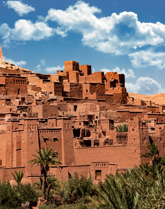 After breakfast, we commence our journey towards the majestic High Atlas Mountains, traversing the scenic Tizi-n-Tichka pass, which soars to an altitude of 2260 meters. This route offers breathtaking panoramic views as we wind through charming Berber villages and witness the ever-changing landscapes and vibrant colors of the mountains. We will pause at the pass for a revitalizing mint tea, allowing you to fully appreciate the stunning scenery. Descending the other side, we arrive at the UNESCO World Heritage site of Ait Benhaddou Kasbah, a remarkably preserved fortified village that has served as a backdrop for numerous international films, including "Gladiator" and "Lawrence of Arabia." After exploring this historical marvel and enjoying lunch, we continue to Ouarzazate, known as the "Hollywood of Africa." Here, we will visit the impressive Taourirt Kasbah and the renowned Atlas Film Studios, the largest in Africa. Our journey then takes us through the picturesque Valley of Roses and the dramatic Dades Valley, culminating in the breathtaking Dades Gorge. We will arrive in time for sunset and settle into a traditional and charming hotel nestled within the gorge for dinner and a peaceful overnight stay.