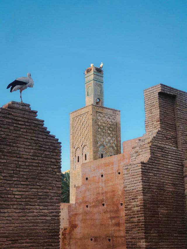 A guided tour of the Fez Medina, a UNESCO World Heritage site and one of the world's largest walled cities. After breakfast, explore its narrow streets filled with fresh fruit, spices, Berber carpets, and Moroccan decor. Visit the Quaraouiyine Mosque (founded in 859 by Fatima el Fihri), the Andalusian Mosque (dating back to 860), the Nejjarine fountain, Medersas (Koranic schools), the Batha Palace (now a museum), the Chouwara Tanneries, the Attarine Souk, Bab Boujloud, the Mellah, Ibn Danan synagogue, and the Kings Palace. In the afternoon, visit the Borj North or South for panoramic views of the old Medina. Dinner and overnight stay in a Riad / Hotel.