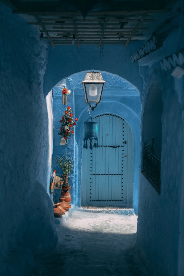 Upon your arrival in Tangier (by ferry or plane), you will be greeted by your driver. The journey begins towards Chefchaouen, the "Blue town" of Morocco, nestled in the Rif Mountains. En route, you'll witness charming villages dotting the landscape. A short tour of Chefchaouen shows its unique blue-washed buildings and the relaxed ambiance of the Rif Mountains. Dinner and overnight stay at a local Hotel/Riad.