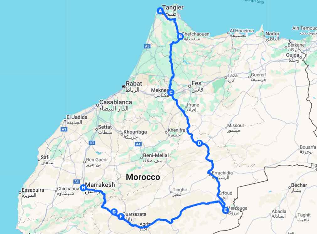 Tangier to Marrakech via Desert Tour in 4 Days